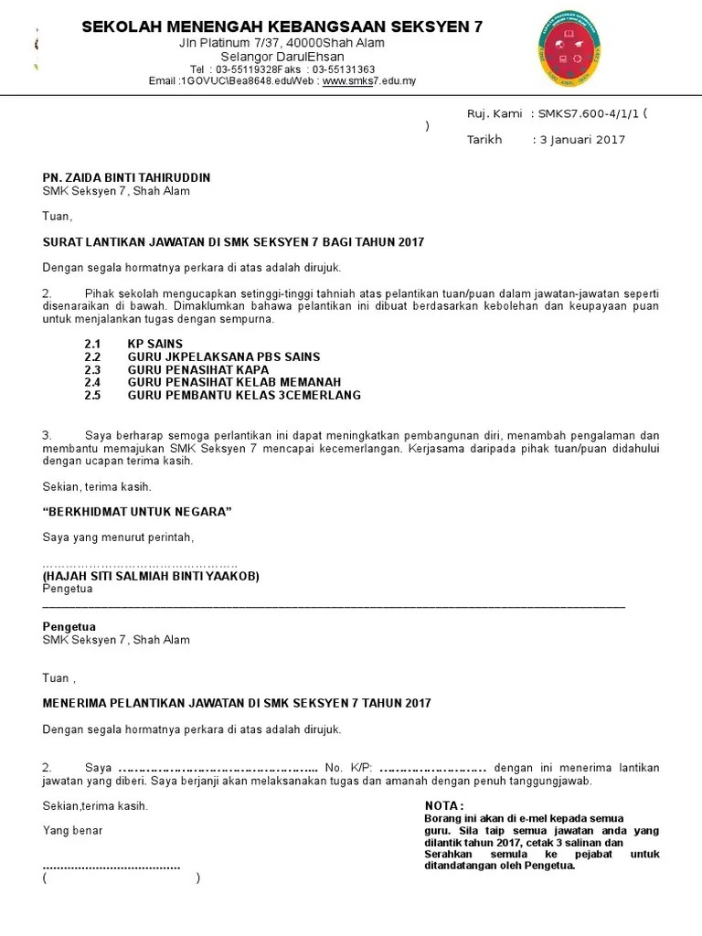 Contoh surat pelantikan kerja kerajaan letter 7saudara com.